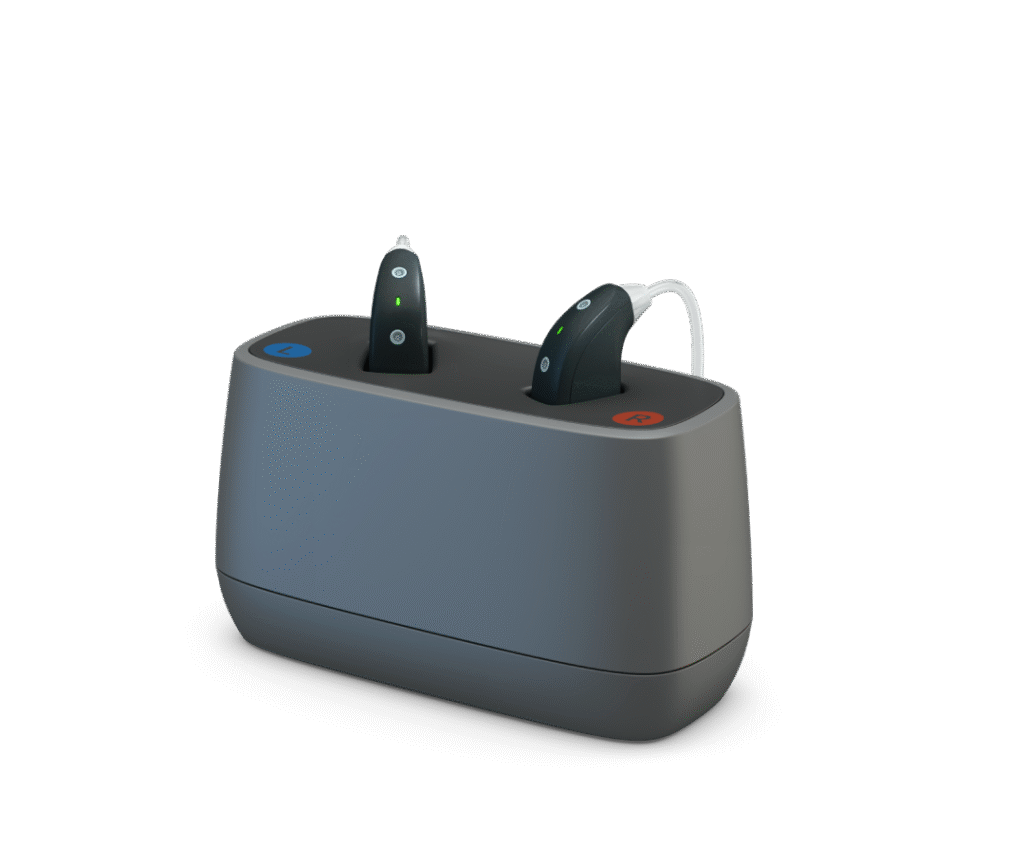- CROS capability for single-sided hearing loss: transmits sound from the non-hearing ear to the better ear.